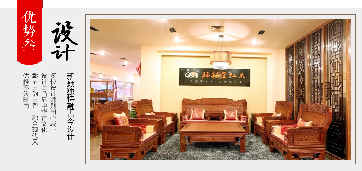 東陽市大聯福林堂紅木家具廠座落于素有“東方好萊塢”之稱的國家AAAAA級影視旅游基地橫店影視城, 是一家集開發(fā)、設計、生產、銷售、服務為一體的綜合型企業。本公司匯集一批具有豐富生產經驗的能工巧匠,具有豐富的紅木家具設計生產經驗。本公司產品主要選用紫檀、花梨、酸枝、雞翅等優(yōu)質紅木,并采用純天然蜂蠟飾面。經過蒸煮、脫脂、烘干、定型等多道工序嚴格處理,福林堂紅木始終嚴格秉承“質量第一”、“信譽至上”的經營理念,在繼承傳統工藝的基礎上,不斷創(chuàng)新,大力引進先進家具設備、烘干設備,實現了現代生產工藝與傳統表現手法的有機相融。